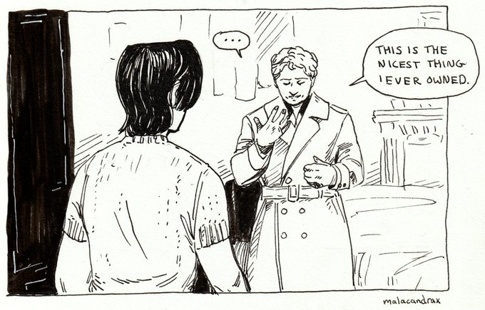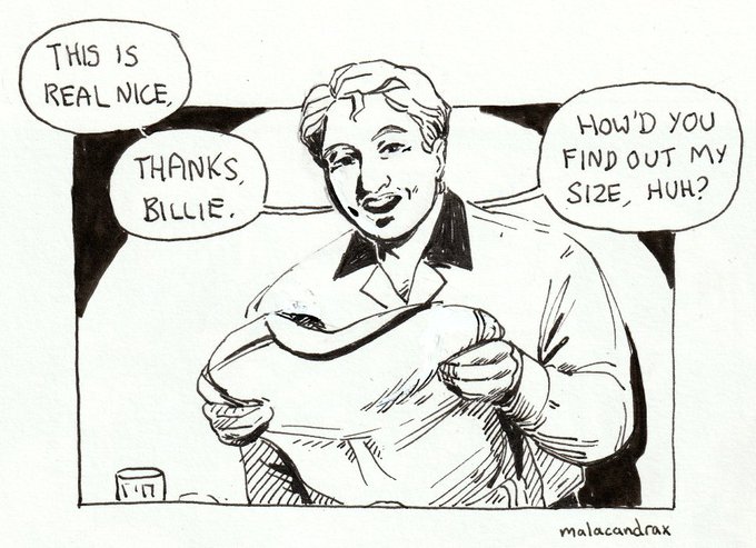 Drawtober #28 Bertie don't be rude. I regret some of those flat blacks but you live and learn I guess. [thread] A gift 🎁 #drawtober2021 #drawtober #butchtober