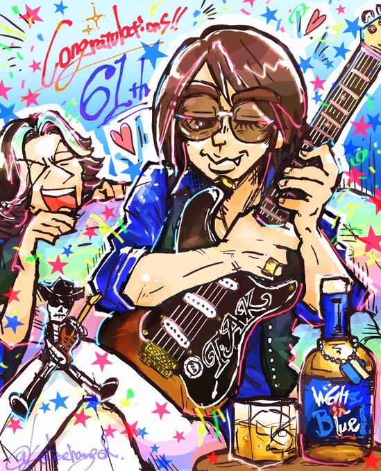今日はB’zの「松本 孝弘さん」62歳のバースデーですね🎂 まっちゃん、お誕生日おめでとうございます🎉 世界的なギタリスト、これからもロックなビートで私達を魅了させてください‼️ ■私が描いた「松本 孝弘さん」です。 因みに私も『まっちゃん』ですw( ̄▽ ̄;) #Bz #松本孝弘誕生祭2023