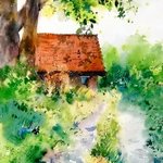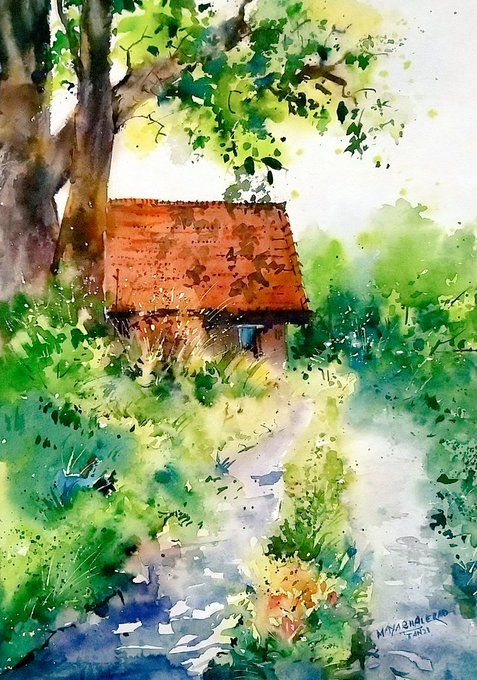 A cozy cabin tucked in the midst of the #woods, enjoying the green embrace nature offers! 🖌🎨🖼 #forests #cabin #nature #green #paintingoftheday #art #artvsartist2021 #artshare #Watercolor
