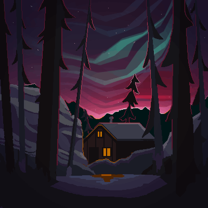 Oh wow! 3000!🥳 Thank you kindly my dear followers ♥️ I made this illustration as a gratitude to each of you for all your active support ♥️ Have a joyful new year. Peace and love to everyone❄️ #pixelart #ドット絵 #ArtistOnTwitter #winter #cabin #snow #cozy #NewYear2023