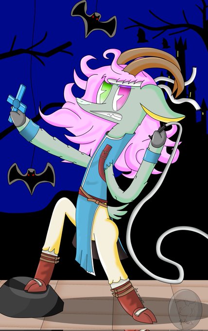 ¿Alguien llamó al clan Belmont? Tremendo cosplay se marcó Bitspark para una fiesta. Basado en los diseños originales y no los rediseños #digitalart #dibujo #originalcharacters #mlpoc #cabra #feral #cosplay #Castlevania #goat