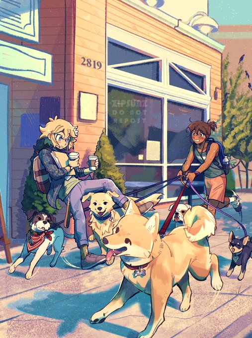 #cactiflowerweek2023: day 4 - alternate universe college au meetcute where kel walks dogs for a little extra cash and nearly ends up giving some random guy a concussion and second-degree burns 🐶☕ (bonus below) [ #omori, #omorifanart, #omoricactiflower ]