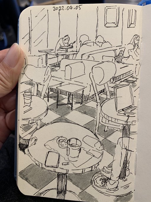 Back to Bible study. 1st time since 2020. #etchrsketchbook #watercolor #cafesketch #lifedrawing #biblestudy