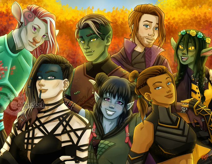 Who's ready for this big happy family to reunited next week!?!?!?!! 🤩 #mightynein #criticalrole #criticalrolefanart #mightyneinreunited #caduceusclay #yasha #fjord #jester #beau #nottthebrave #calebwidowgast