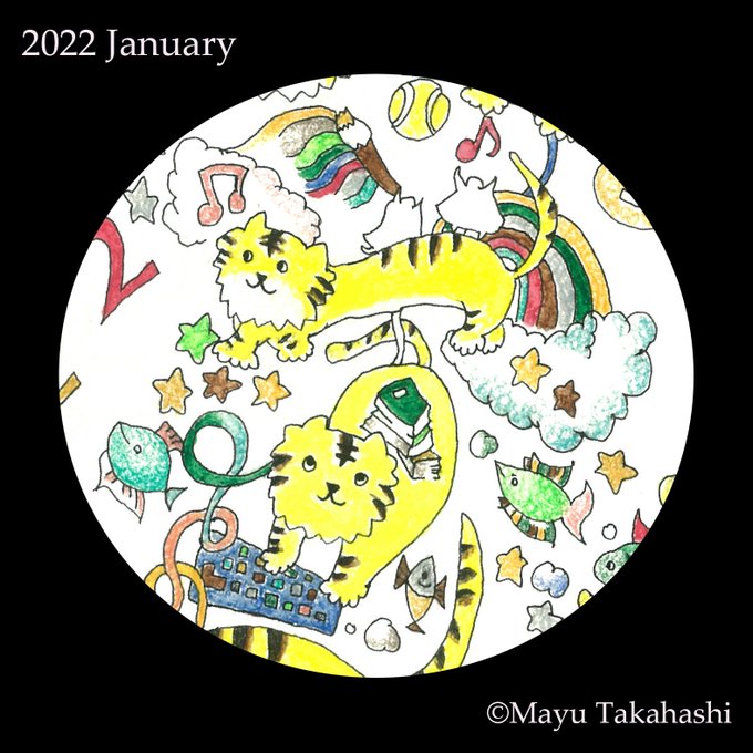 minneで販売してるカレンダーを待ち受けに使えるようにしてみました🐯 少し早いですがよかったら保存してください♪ #イラスト #1月カレンダー #illustration #Calendar #calendar2022 #絵描きさんと繋がりたい