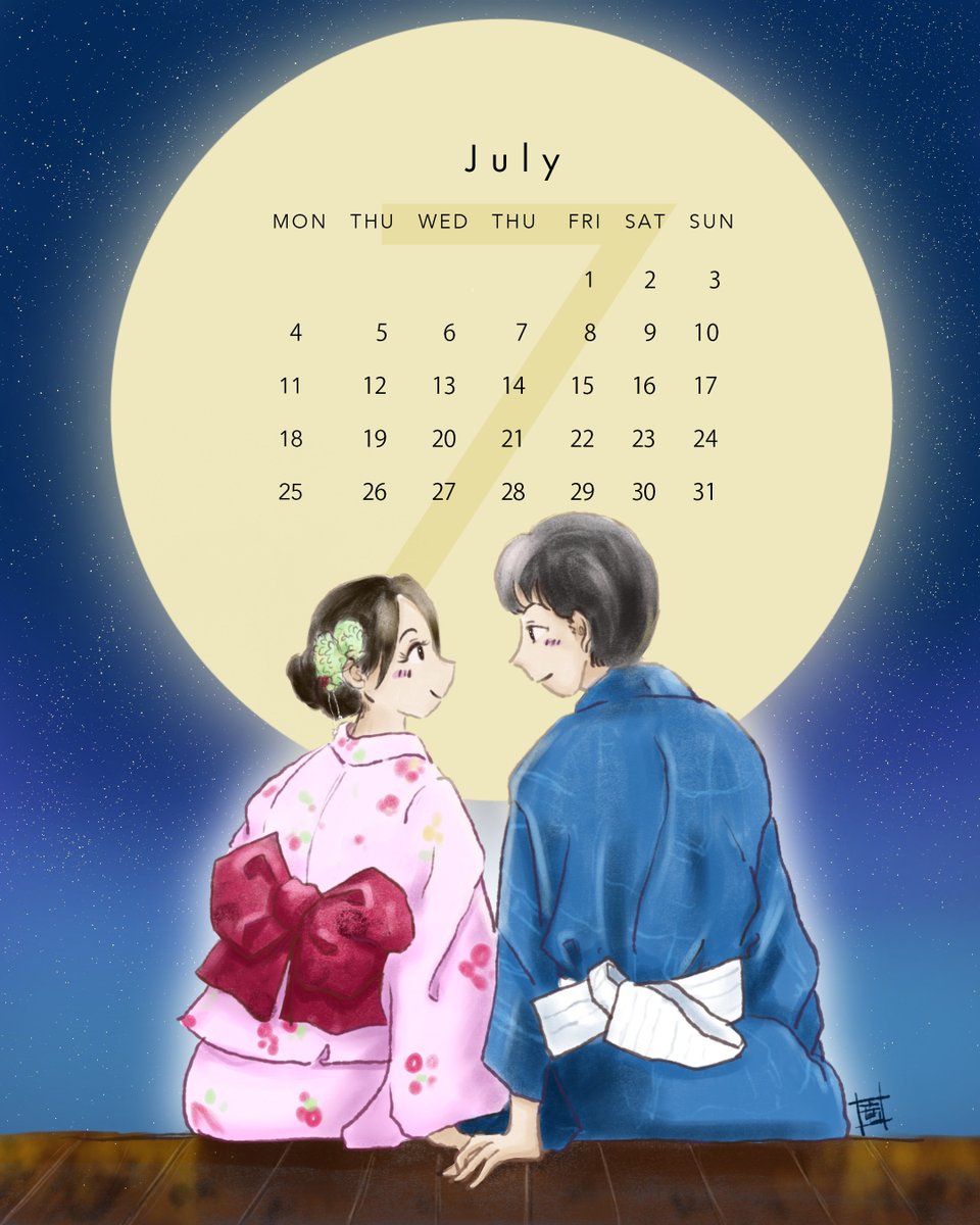 今年は梅雨明けが早いですね 近畿地方ももう明けそう 今日も暑い 7月といえば七夕 毎年梅雨で天の川は見れないけど 今年は梅雨明け早いし見れるかも! そんな7月のカレンダー よければお使いください #calender #カレンダーイラスト #カレンダー #japanesesummer #イラストレーター #イラスト