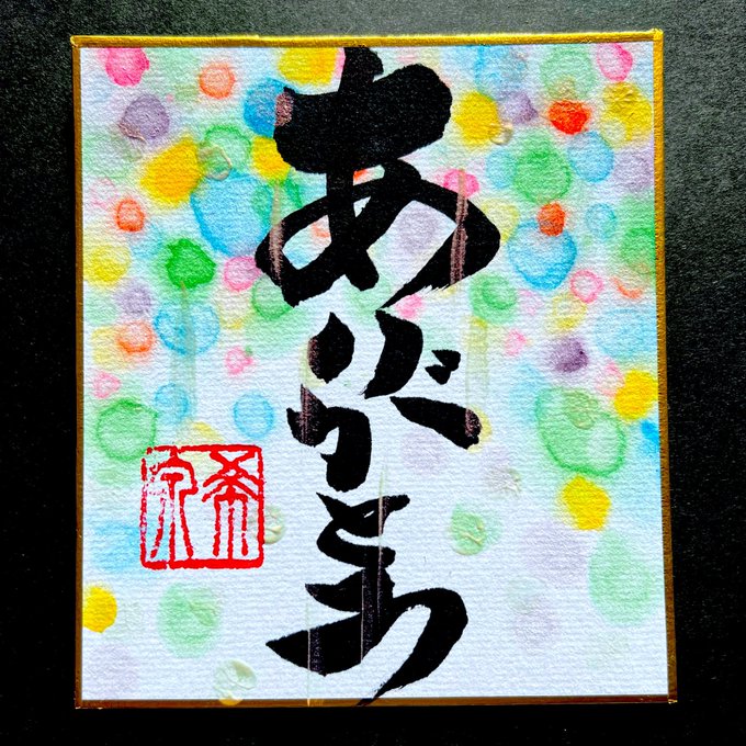 ありがとう / thank you 色紙 12cm×13cm 墨 水彩 アクリルガッシュ 2,600円 #ありがとう #書道 #書道家 #筆文字 #calligraphy #calligraphyart #japanesecalligraphy #水彩画 #waterpainting #waterpaintingart #イチナナ #クリエイター #アーティスト