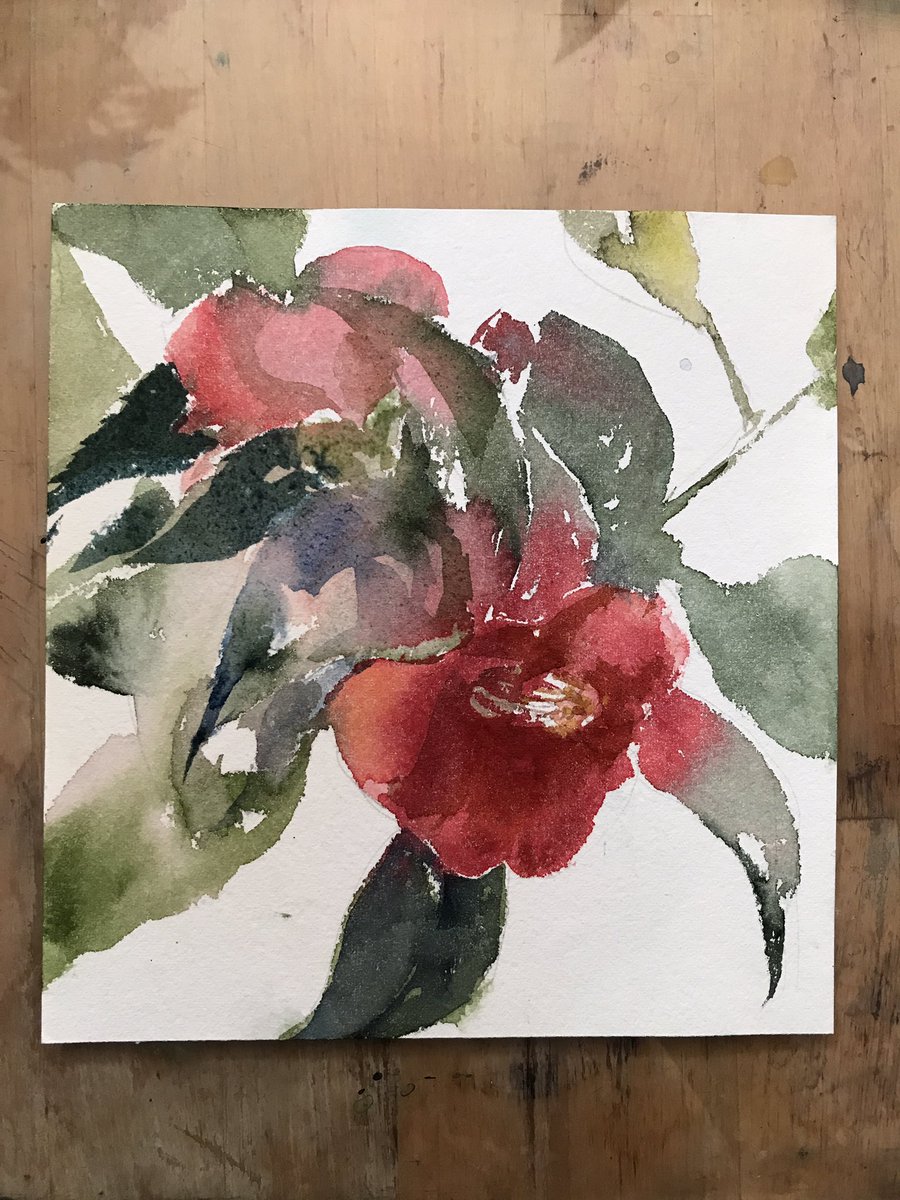 雪椿、完成いたしました🎉✨ 椿の花が大好きなのですごく楽しく描けました(*^^*)💕 #watercolor #watercolorpainting #drawing #水彩画 #雪椿 #椿 #Camellia #snowcamellia #flowerpainting