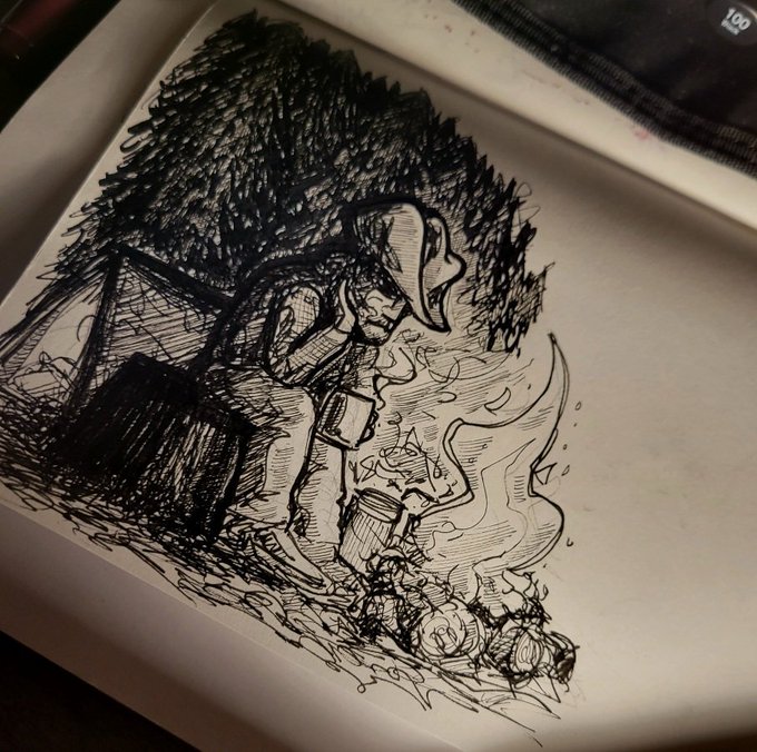 It's been a long day. #Inktober #Day28 #inktober2022 #inktobercamping #sketchbook #sketch #ink #campfiresketch