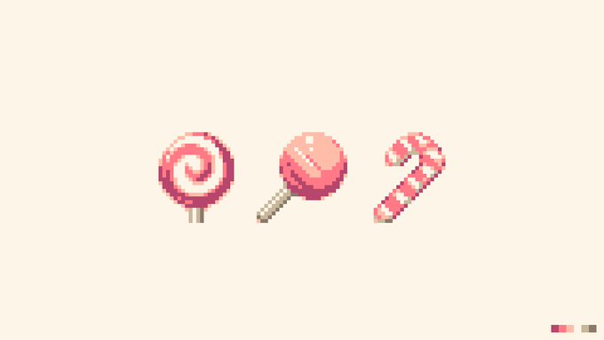 my set of #candy for #pixel_dailies made in 24x24px each #pixaki #pixelart #ドット絵 #radiantxv (palette)