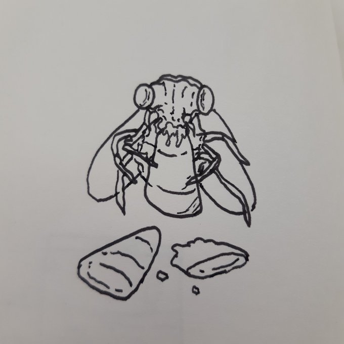 Inktober corn fly, enjoying a much more concentrated corn product. #inktober2021 #Inktober #ArtistOnTwitter #artist #sketch #candycorn #drawing