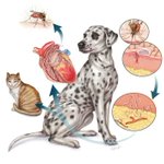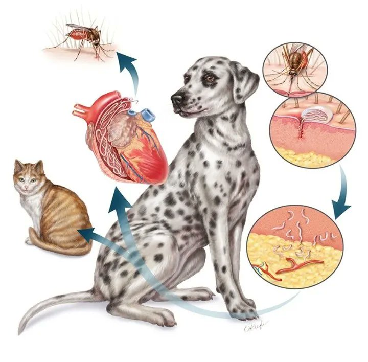 Illustration by #LaurieOKeefe of the heart worm disease life cycle in canines. View more work by Laurie O'Keefe: buff.ly/3g9Mx4q #heartwormdisease #lifecycle #canines #naturalscience #veterinarymedicine #zoology #veterinarian #diseasemanagement #color #illustration #vet