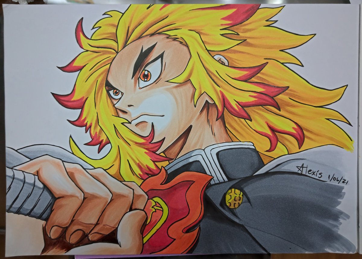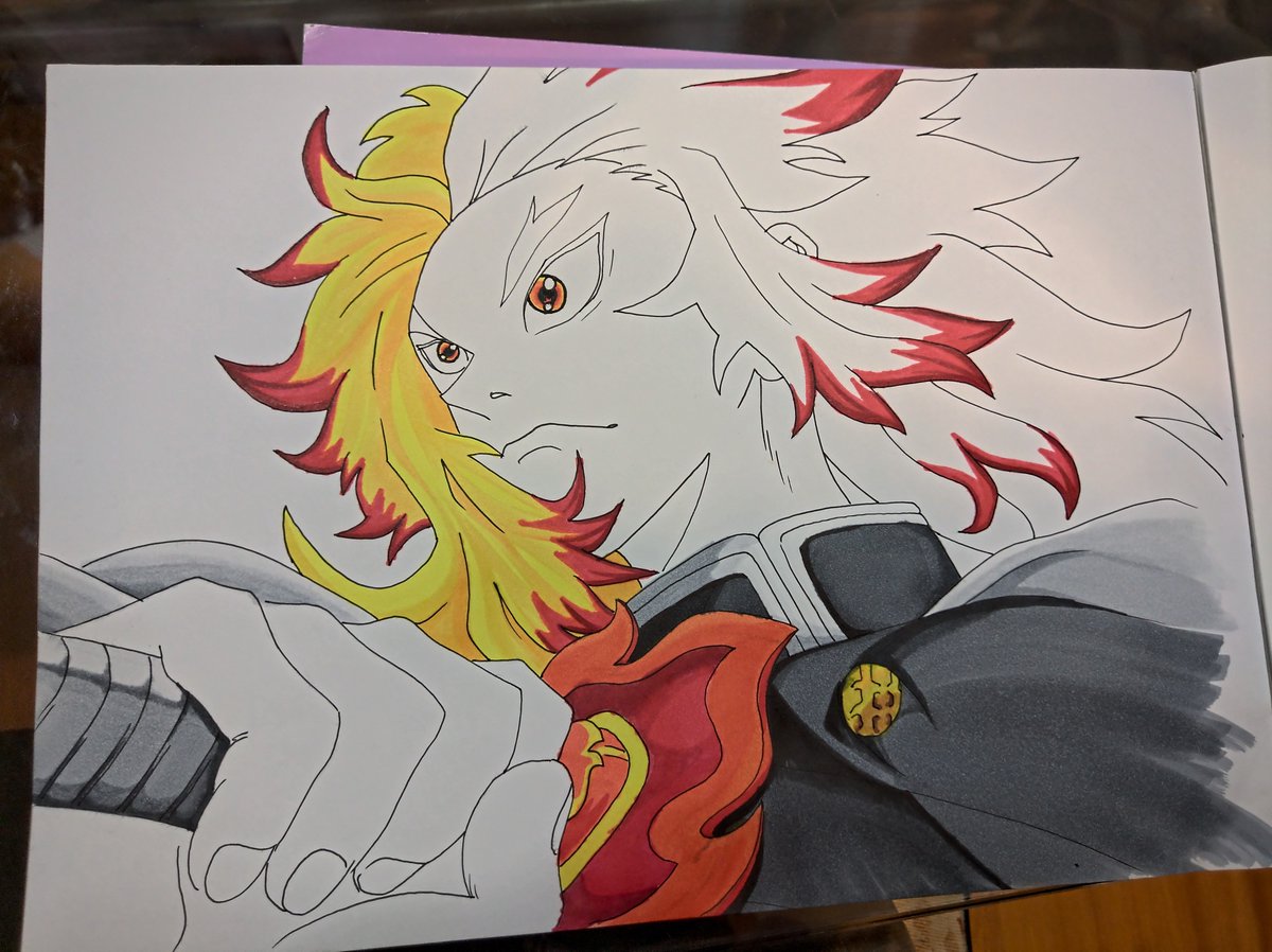 Intentando dibujar a Rengoku y Probando marcadores de alcohol . . . . . #kimetsunoyaiba #kimetsunoyaibafanart #rengoku #rengokukyojuro #anime #fanart #animelove #DemonSlayer #copicmarkers #cansonpaper #rengokuedit #draw #drawing #rengokulove