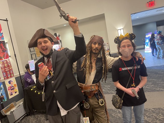 It is just too perfect that I happen to stumble upon of me as Aquaman taking a video of @EthanTrace as Captain Jack Sparrow on the day Jonny Depp wins in court. Thank you to the person who took this. #Aquaman #CaptainJackSparrow #JusticeForJohhnyDepp #cosplay #MomoCon2022