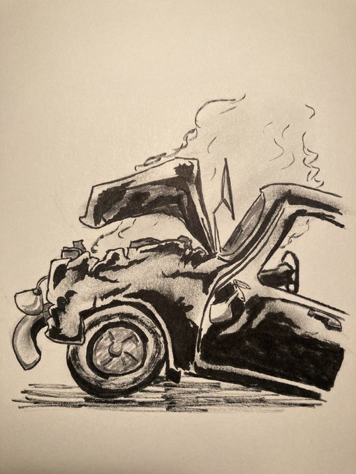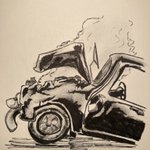 Inktober 2021 Day 17 - Collide: A car that’s been through the ringer for today. Was messing with some ink styles for today #inkart #inktober #inktober2021 #inktobercollide #inktober2021collide #inktober2021day17 #collide #carcrash #ArtistOnTwitter