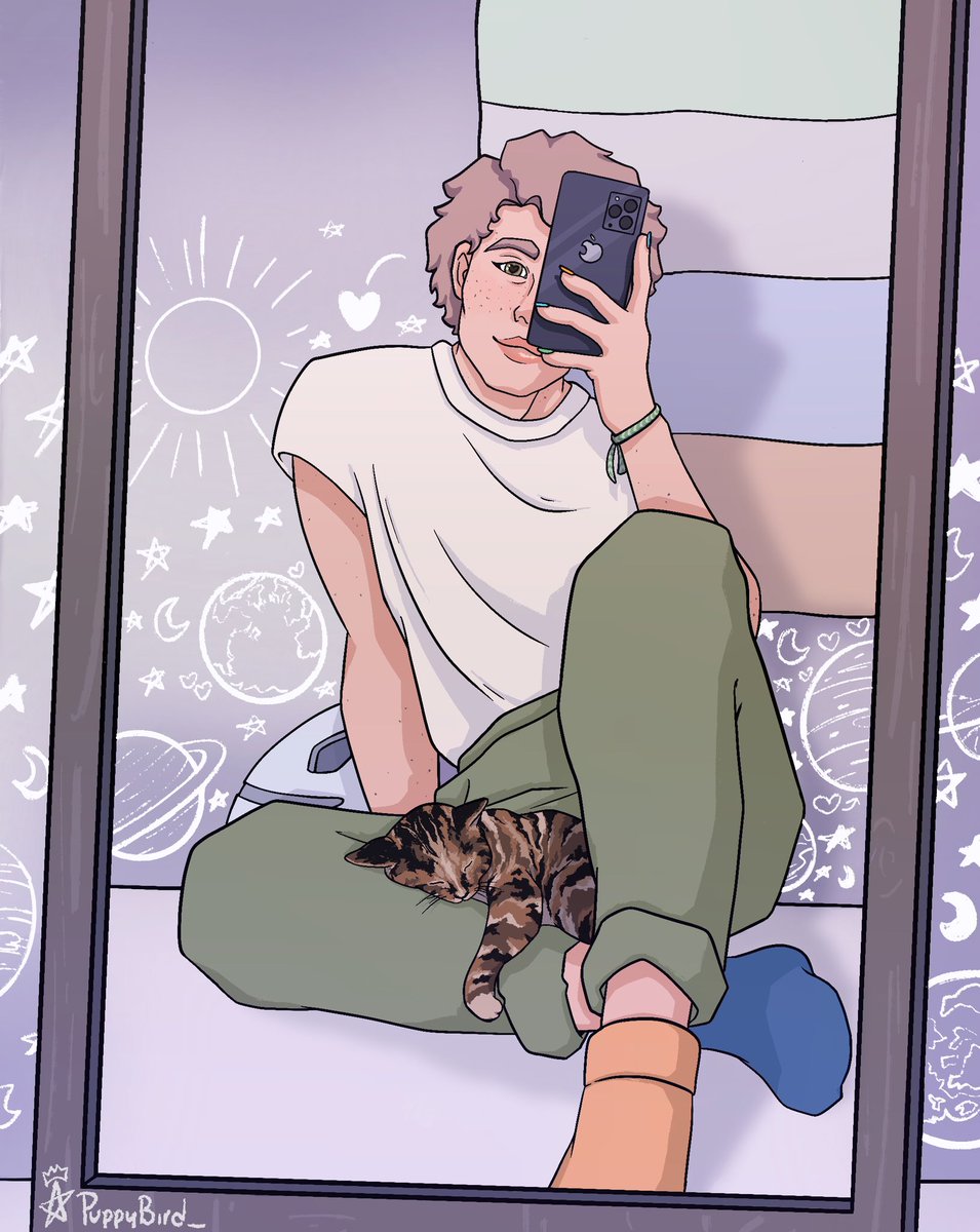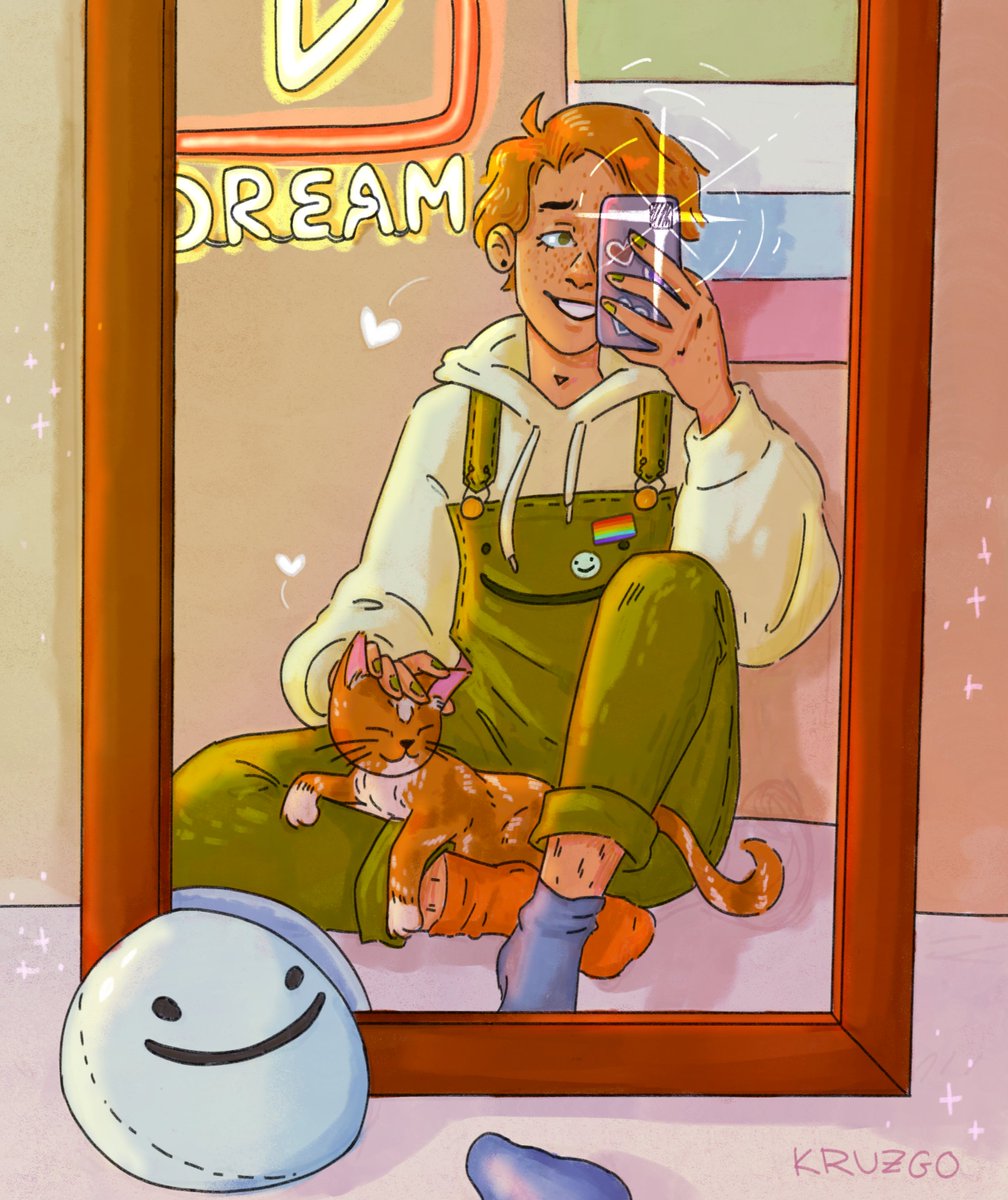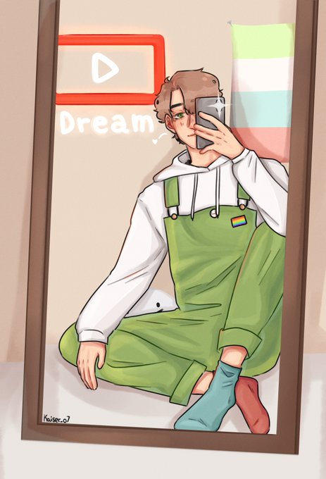he loves his outfit so it’s mirror selfie time #care10kDTIYS @careously #dreamfanart @Dream__Fanart