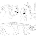 just a collection of a few of my dino doodles. #dinosaur #paleoart #paleontology #illustration #characterdesign #carnotaurus #allosaurus #tyrannosaurusrex #apatosaurus #Prehistoric #cartoon