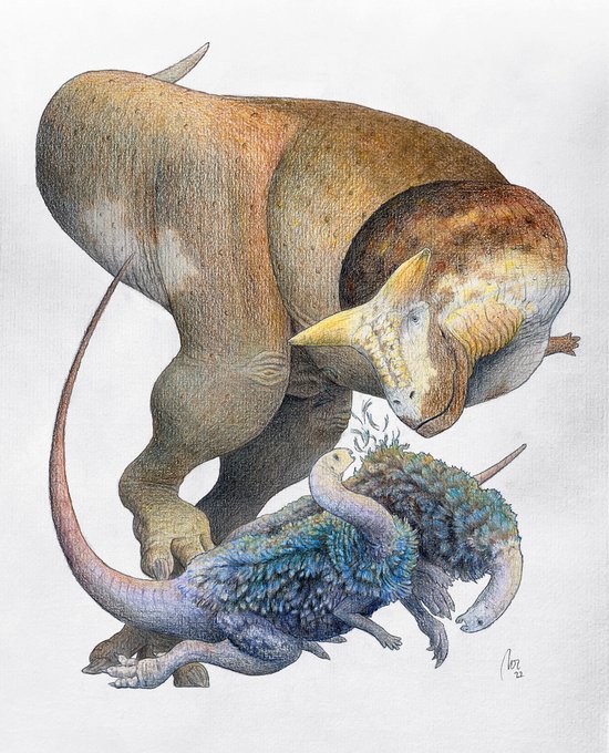 Two male #Carnotaurus courting each other. Homosexual behaviour is common in extant dinosaurs and why wouldn’t it have been in extinct ones too? #PrideMonth #PrehistoricPlanet twitter.com/nhm_london/sta…