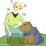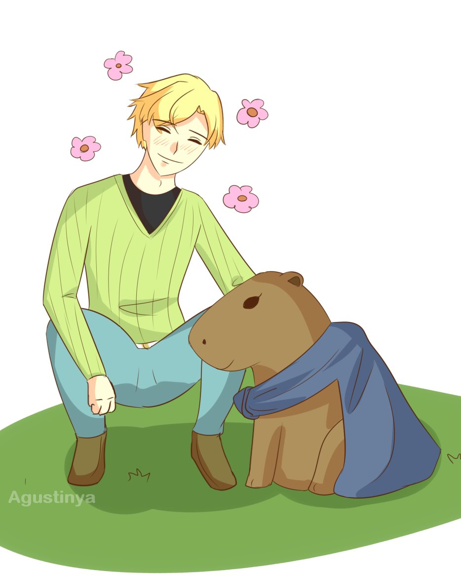 yesterday while talking to my friends we thought it would be super cute if Satan hanged out with a carpincho (capybara) so I drew it 🥺💚 #obeyme #obeymesatan #obeymefanart #carpincho #carpinchos