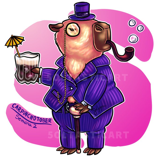 Carpinchotober - Semana 2 🍷 Fino señores 🧐 ~ #carpinchotober #carpincho #inktober #dibujotober #ilustratober #dibujodigital #digitalarte #finoseñores #modofino #ilustracion