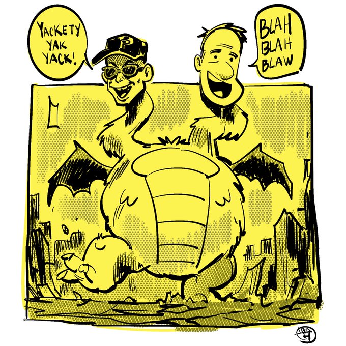 #kayfabetober day 26: Cartoonist Kayfabe! Wasn’t sure what to draw with this one so i just made @jimruggart and @ed_piskor the ultimate kayfabe kaiju. #illustration #cartoon #cartoonistkayfabe