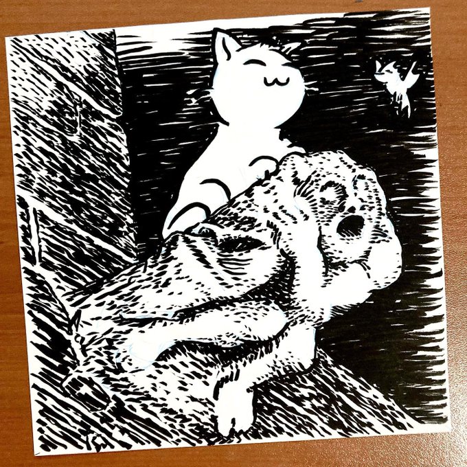 Inktober día 1: #gargoyle o #gargola Gatona y Perico posando en la Casa del Mono, en Cáceres. #gatonayperico #caceres #casadelmono : : : #inktober #inktober2022 @InktoberES