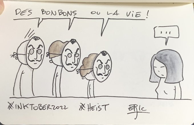 Un peu à la bourre… #inktober #inktober2022 #heist #casadepapel #illustration #halloween #desbonbonsoulavie