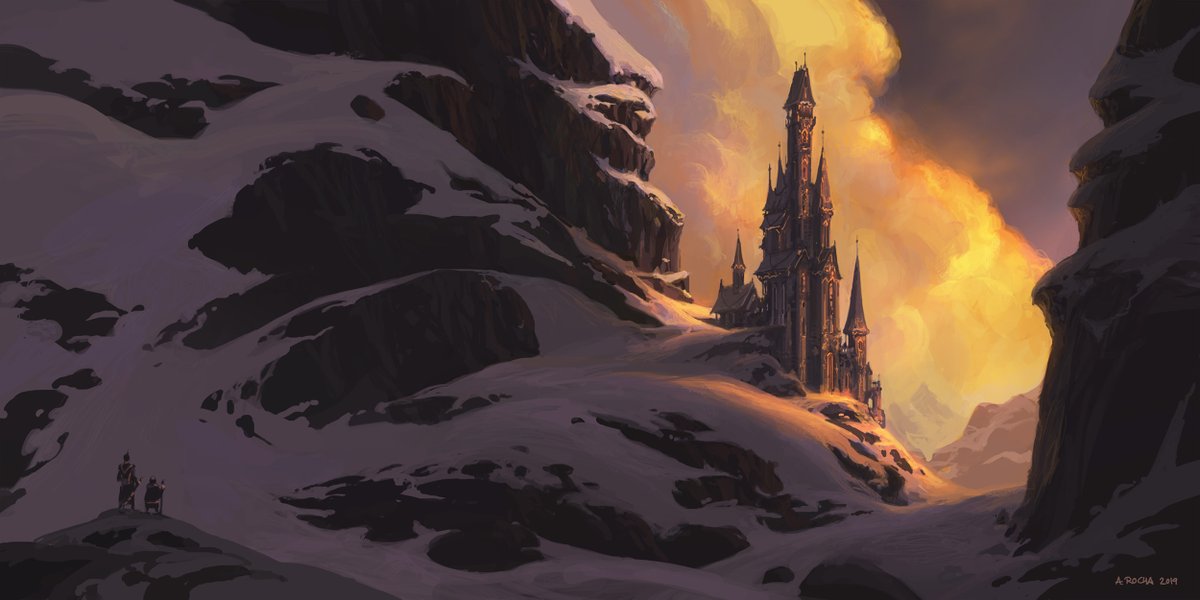 "Tall Fortress" - from sketch to final. #noai #conceptart #fantasyart #digitalart #fortress #mountains #snow #castle