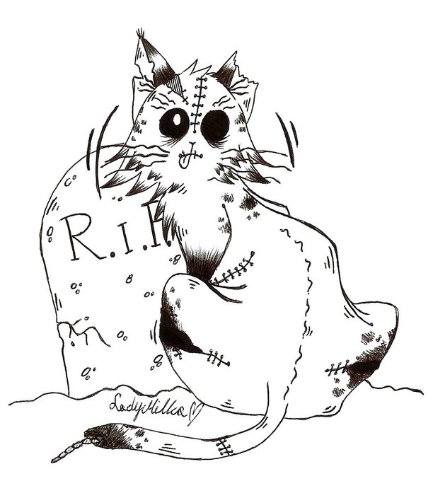 Day 11 - undead cat. #myart #inktober2021 #inktober #Inktober21 #catober #catober2021 #catober21 #cat #undead #undeadcat #Zombie