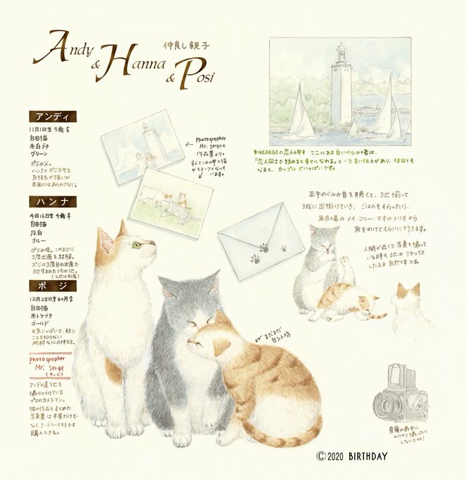ネコ町ナーゴの猫だより 恋人岬が、テリトリーの仲良し親子。人に対して警戒心のない3匹でしたが、ポジが観光客に連れていかれそうになってからは、注意する様になりました。#ネコ #猫 #猫イラスト #猫あるある #cat #catstagram #cats #catsagram #catillustration