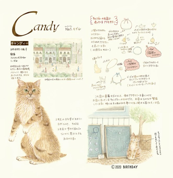 ネコ町ナーゴの猫だより 看板猫のキャンディーは、お客さんがやって来ると、たとえ横になってゴロンとしていた時でも後ろ足だけでスッ…と立ちあがって「ミャ〜ン」とごあいさつします。#ネコ #猫 #猫イラスト #猫あるある #cat #catstagram #cats #catsagram #catillustration