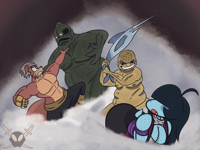 Roger and Diana find themselves in combat as they are rushed down a waterfall deep within a Salt Cave! The creatures are not terribly happy to see them! #WakeofBlue #Pirates #caves #originalcharacter #ocs #furryart #furry #inktober2021