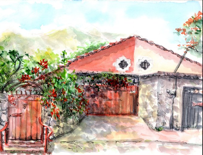 House on Paseo Los Veleros, La Floresta, Ajijic. * * * * * #scbwi #CBIG #CBIGNYC #illustration #drawing #pleinair #urbansketchers #urbansketches #midnightatelier #yukotorii @urbansketchersajijic #usk #urbansketchers @urbansketchers #lifeinmexico #ajijic #lafloresta