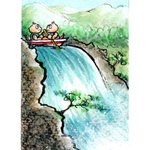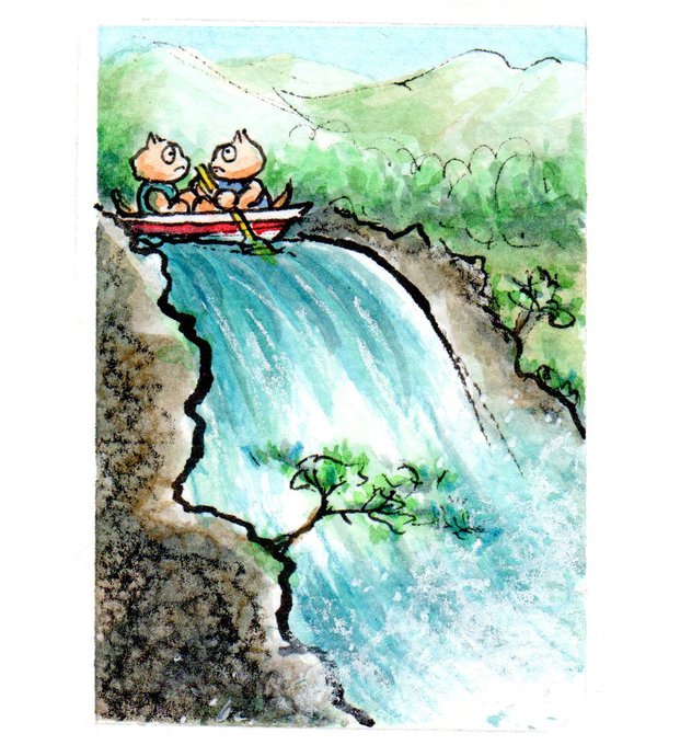 Preparing for October Art Card Trading "Fall" (5) * * * * * #scbwi #CBIG #CBIGNYC #childrensbookillustration #childrensbookillustrator #illustration #drawing #dailydrawing #adrawingaday #midnightatelier #yukotorii #wheels #ferriswheel #artcard #cardtrading #waterfall #cascada