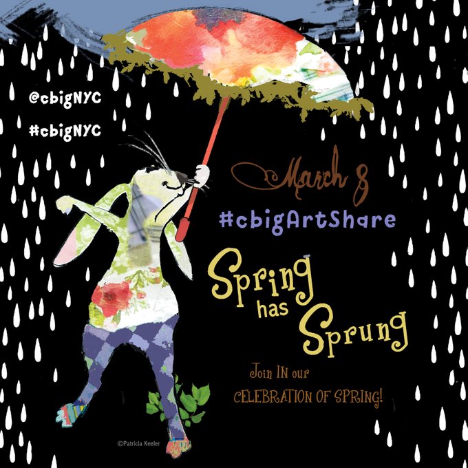 Our next #cbigArtShare is Tuesday, 3/8! The prompt is Spring Has Sprung. Post your #kidlitart spring time images this Tuesday, March 8th to join in! #cbigNYC #ArtShare #artchallenge #childrensbooks #kidlit #rabbit #rain