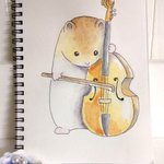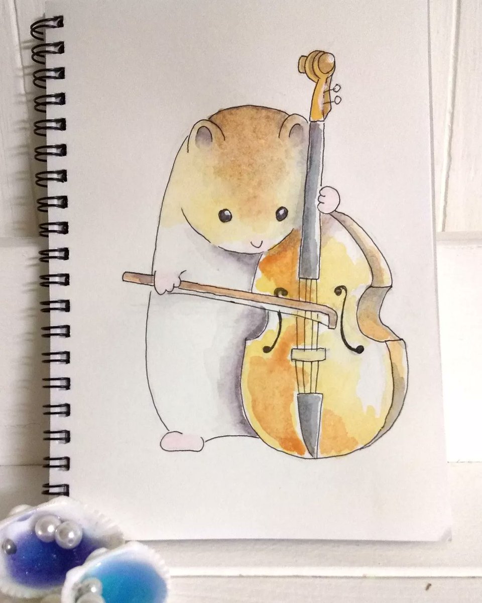 夏休み、キィ〰️となっているお母さんを、ほっこりさせてくれる愛ハムのマル。 #ハムスター #水彩画 #チェロ #お絵描き #hamster #watercolor #watercolorpainting #celloplayer