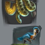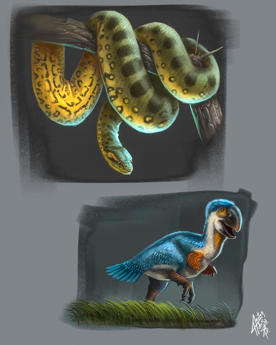 Titanoboa e Gastornis . Vou fazer mais artes dos dois em breve 😬 #titanoboa #cenozoic #paleoart