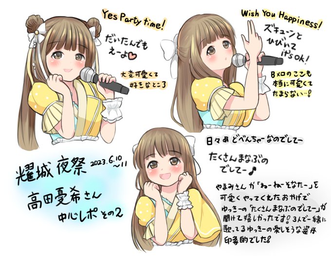 #cgよまつり_day1 #cgよまつり_day2 もう一枚ゆっきー(高田憂希さん)の好きなシーンを描いています✨日々あどのラスサビ前のみなと共に過ごす~のところで二人と頷きあうところも好き。一緒に歌えるのが本当に嬉しくてとっても楽しそうな笑顔を見せてくれるのが印象的で素敵でした☺️