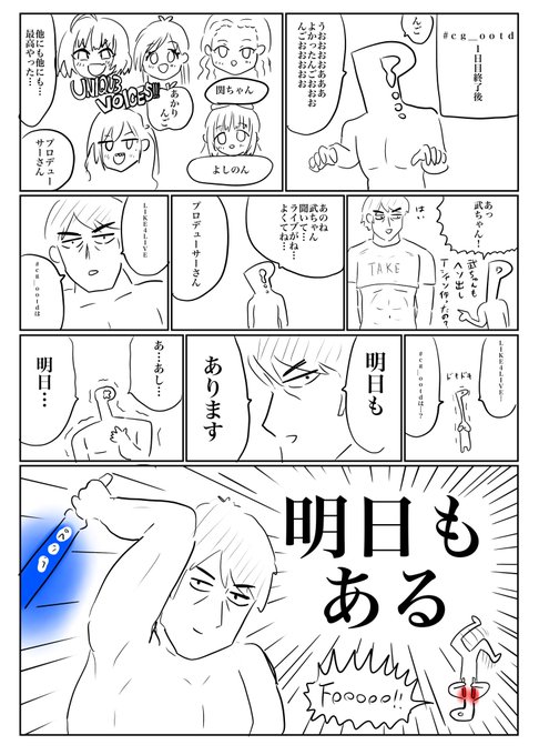 シンデレラガールズ LIKE4LIVE #cg_ootd DAY1お疲れ様でした。 描く事が多すぎてとりあえず出来上がった1ブロック目の部分だけのレポ風漫画アップです。 凪です。 ユニ募がわちゃわちゃ。 フリーダムねこさん。 星希氏の扱い。 続きは月か火。 #cg_ootd_day1