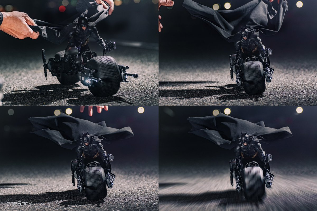 とにかくリアルに。という事で糸も針金もなし。 ただただ繰り返しなびかせるという 闇夜の孤独な変態撮影🦇 バットマンDX19 × バットポッド 2.0 #HotToys #ホットトイズ #cge_studio