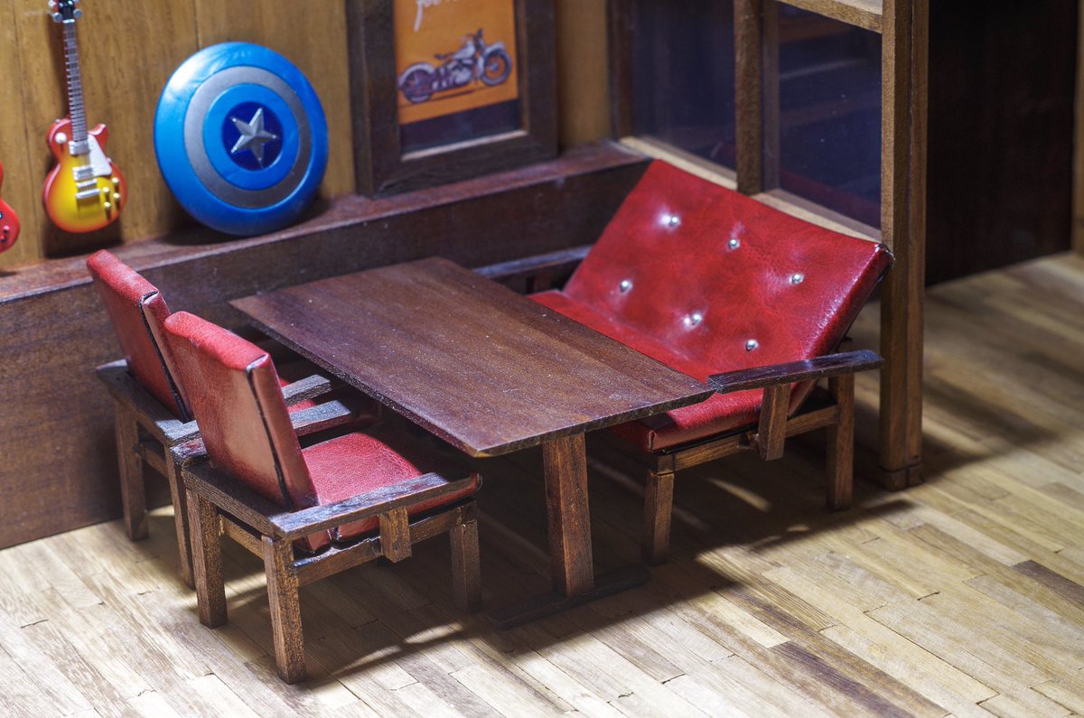 #百均のグッズ間違った使い方選手権 100均の木製角棒や、MDFの板はとても使いやすいく、カッターナイフでもサクサク切れます。 床に一枚ずつ板をはり、MDFにデコレーションシート貼れば家のジオラマの完成です。 #cge_studio