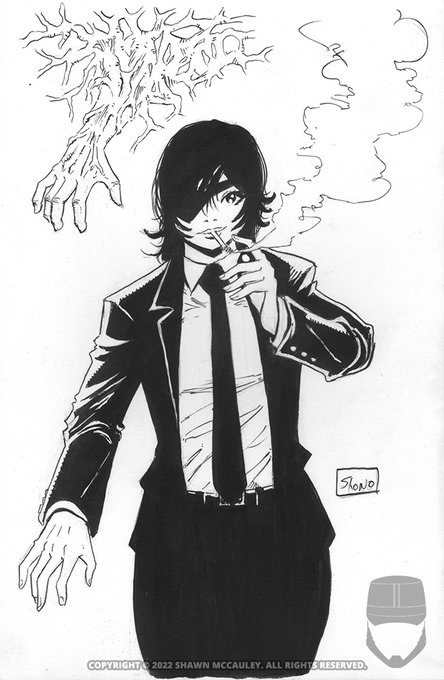 Day 8 - Captain Kishibe I just love how even screen tones look applied to art. It's so simple but really helps forms stand out. I still haven't learned how to do tone scraping yet. But that's next on my list! #chainsawman #DevilHunter #inktober #chainsawmantober