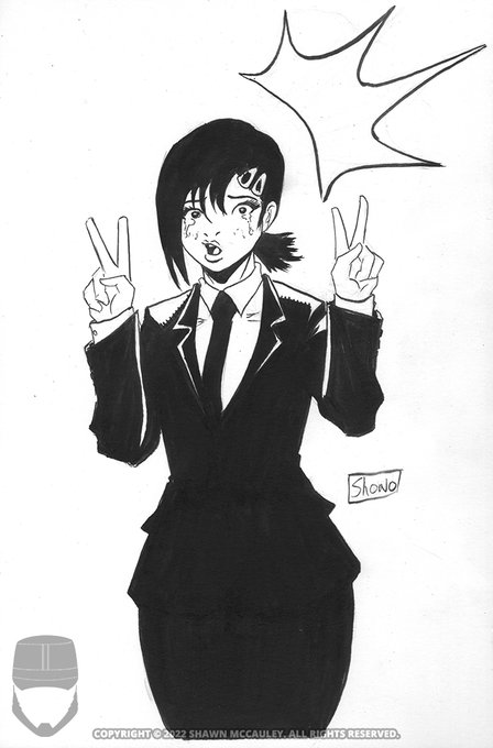 Day 9 - Reze My screen tone powers grow as with today's art uses a 10% and 30% screen tones. It was tough, and it drew blood. But we got it done! #chainsawman #devilhunter #Reze #chainsawmantober #inktober #chainsawmananime #chainsawmanmanga
