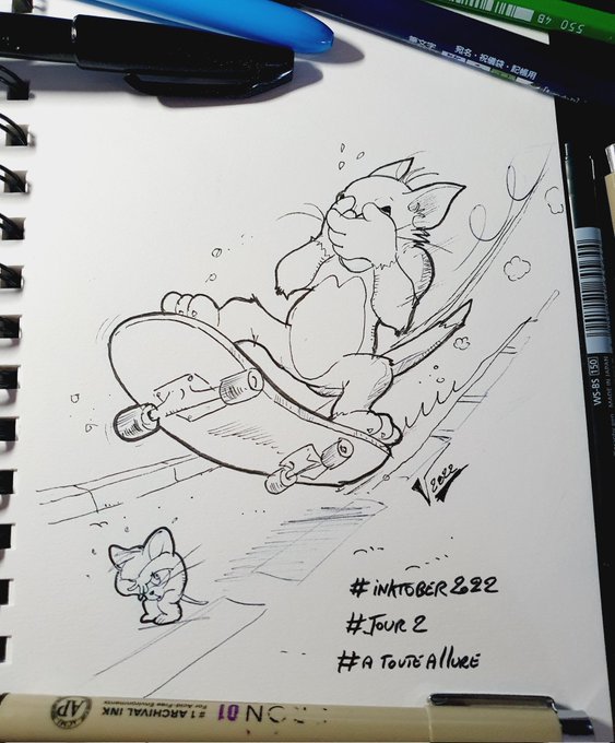 Challenge:"Inktober 2022" _Jour/day:07 _Thème:voyage/trip #inktober2022 #inktober #challengeinktober #jour07 #tomandjerry #cartoon #sketching #artwork #work #workink #ink #inksketch #artistfrench #liners #markersketch