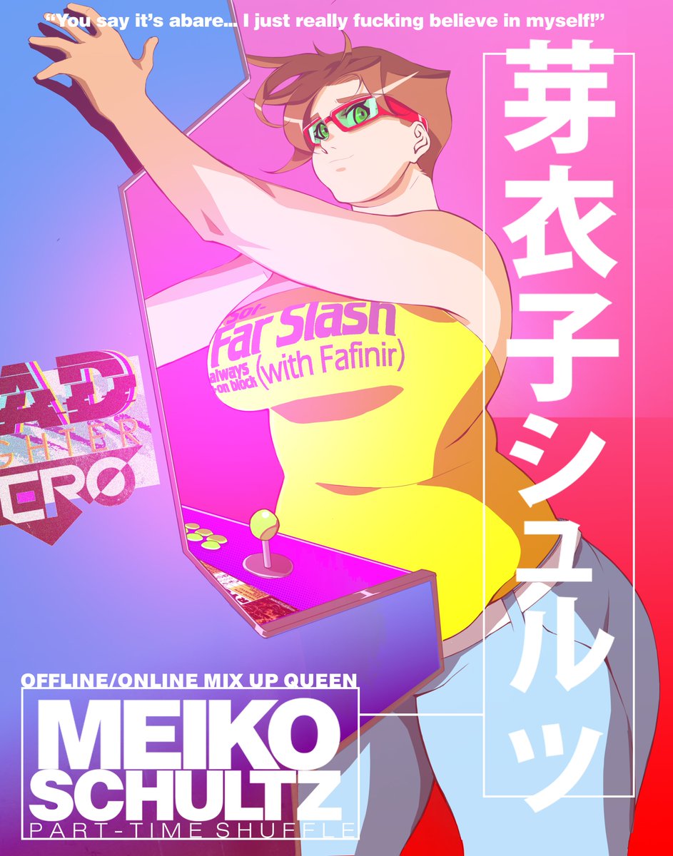 Here's a look at Meiko Schultz, the main character from a project I'm working on called, Part Time Shuffle! If you like vaporwave, fighting games, and chambara films you'll dig it! #vaporwave #anime #chambarafilms #fightinggames #fgc #illustration #arcsystemworks