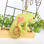 Aki Ako'S GALLERYさんのぐるぐるカメレオン 黄緑色 3way 羊毛フェルト バッグチャーム ストラップ キーリング minne.com/items/33028623 #minne #minneで販売中 #カメレオン #chameleon #羊毛フェルト #needlefelt