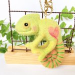 Aki Ako'S GALLERYさんのぐるぐるカメレオン 黄緑色 3way 羊毛フェルト バッグチャーム ストラップ キーリング minne.com/items/33028623 #minne #minneで販売中 #カメレオン #chameleon #羊毛フェルト #needlefelting #ハンドメイド #ハンドメイド好きさんと繋がりたい