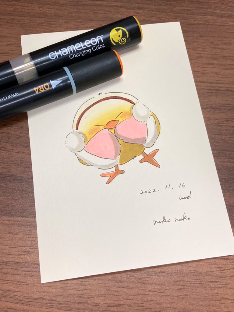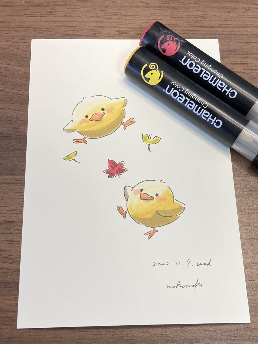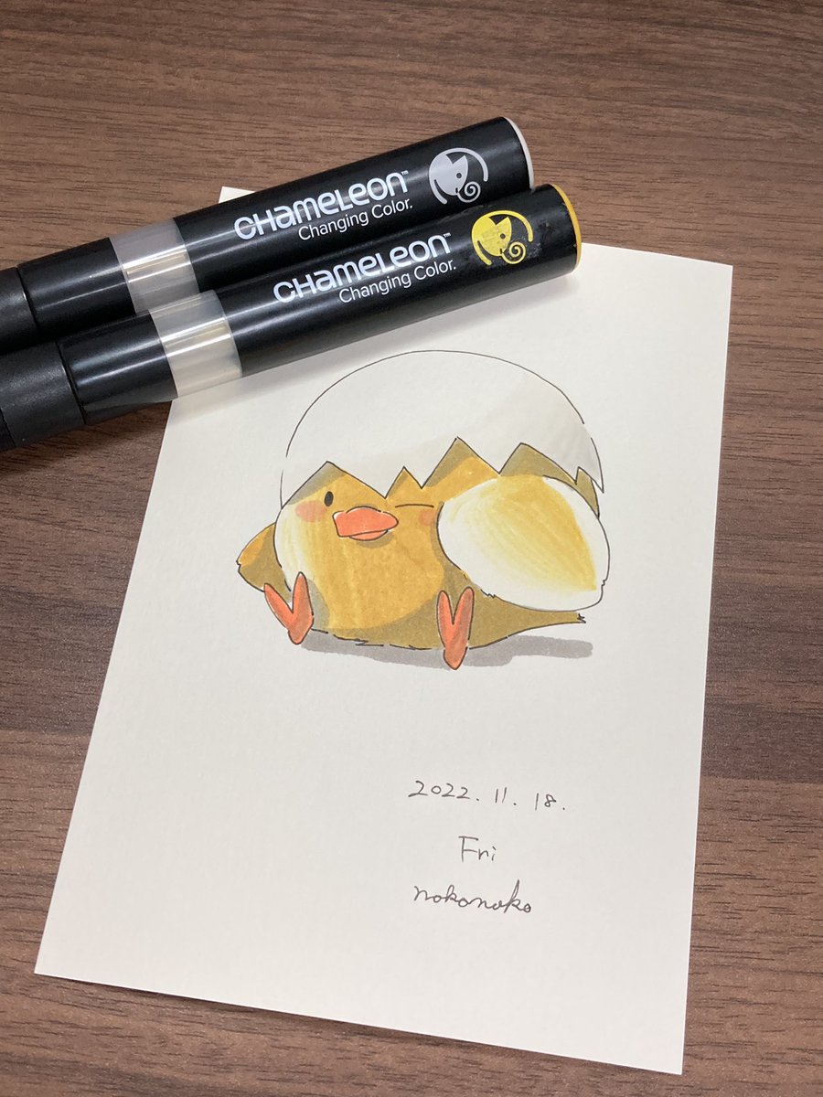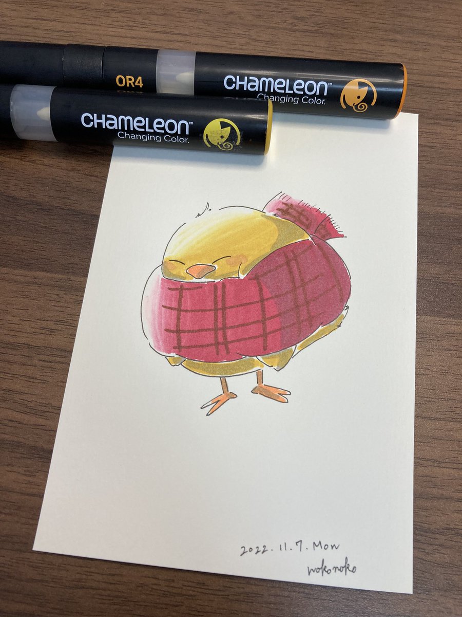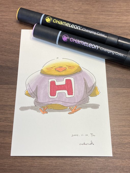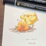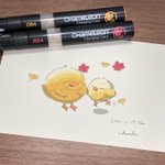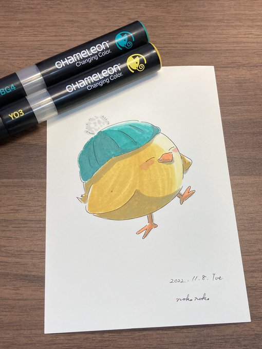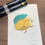 こんばんは🐥 2号です🌙*゚ 今日はニット帽被った🐥ちゃんです! 冬に向かうこの季節、私はとても好きです☺️ YO3をメインの色として使っております✊ #カメレオンペン #chameleonpen #イラスト #illustration #ひよこ