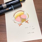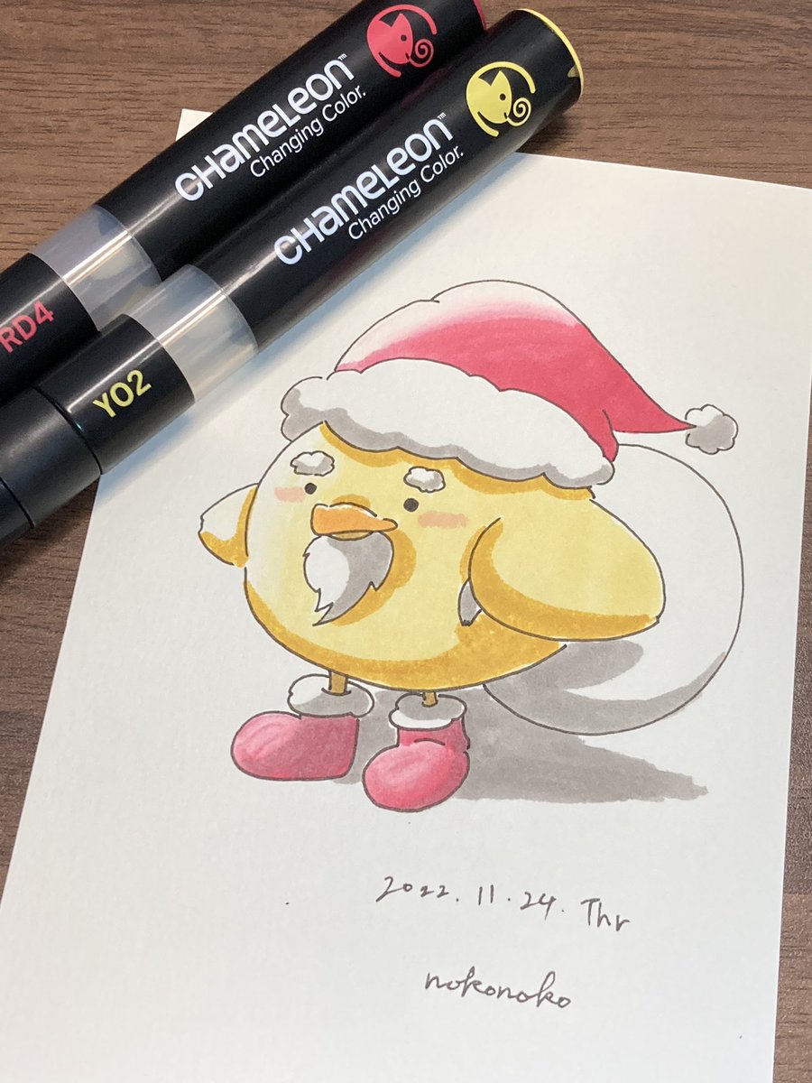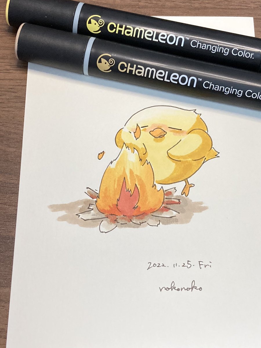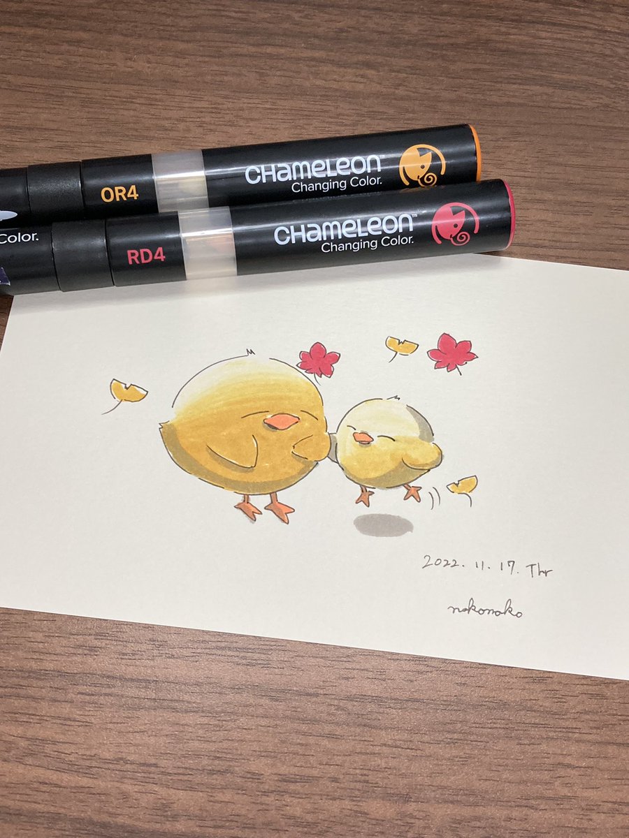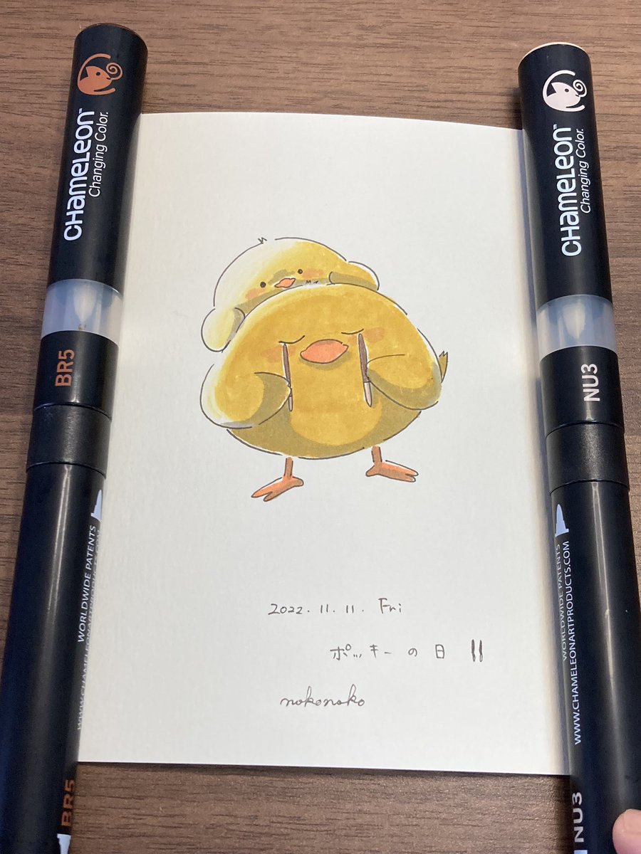 こんばんは🐥 2号です🌙*゚ 今日はニット帽被った🐥ちゃんです! 冬に向かうこの季節、私はとても好きです☺️ YO3をメインの色として使っております✊ #カメレオンペン #chameleonpen #イラスト #illustration #ひよこ