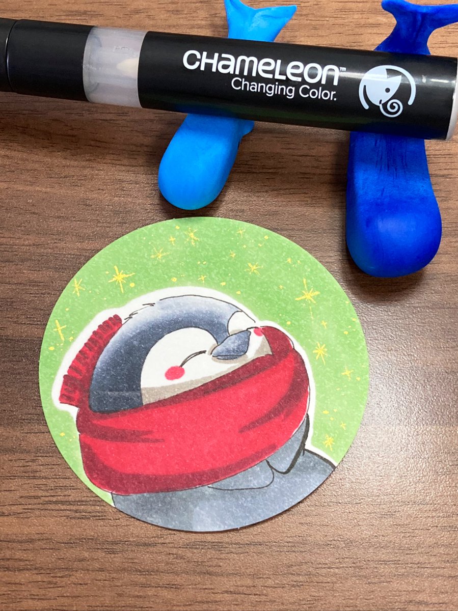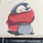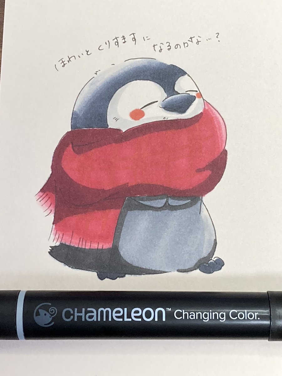 こんばんは!スタッフ2号です! 今日は風が強い😓...💦 風が強いとマフラーは必須ですよね💪 #カメレオンペン #chameleonpen #イラスト #illustration #ペンギン #グラデーション #ペン